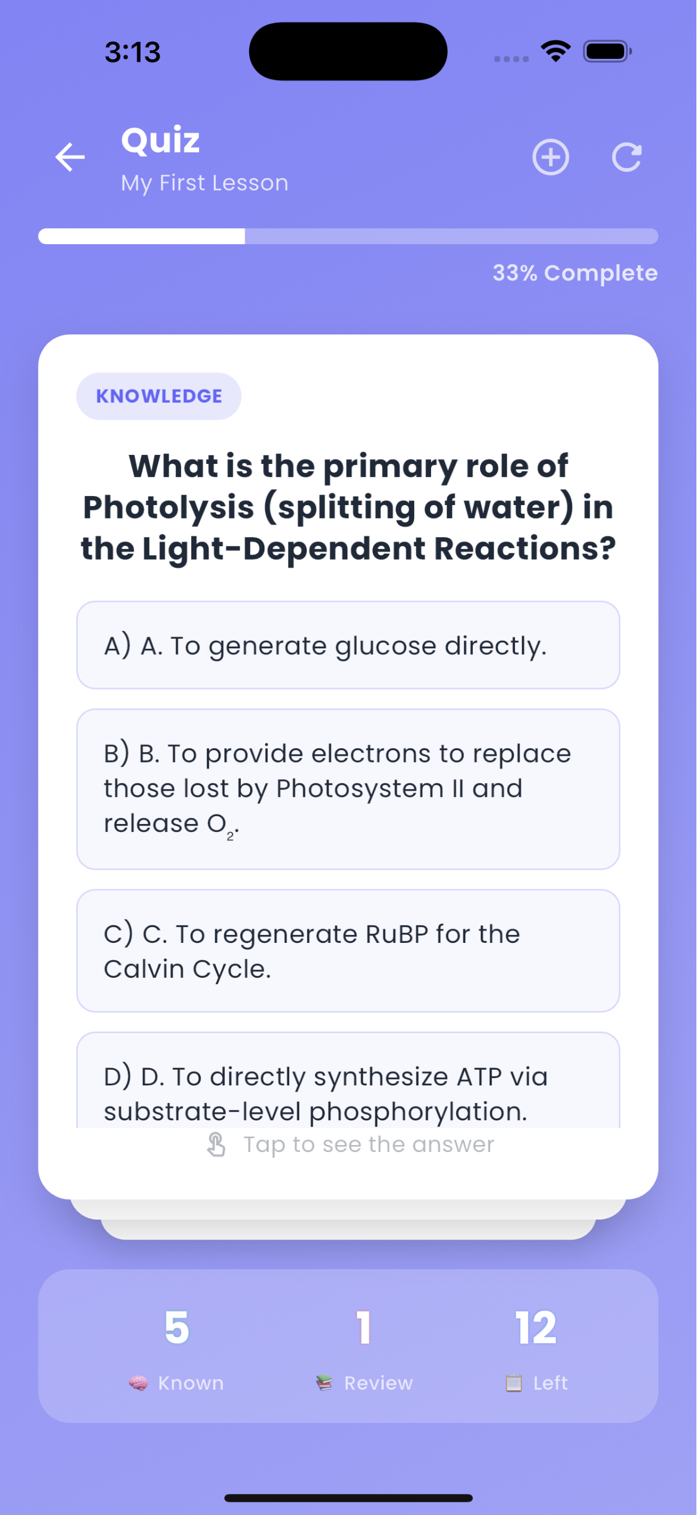 Simply take a picture of your notes or upload a PDF, and watch as our powerful AI instantly creates summaries and generates custom quizzes. It's never been easier to test your knowledge and reinforce what you've learned.
