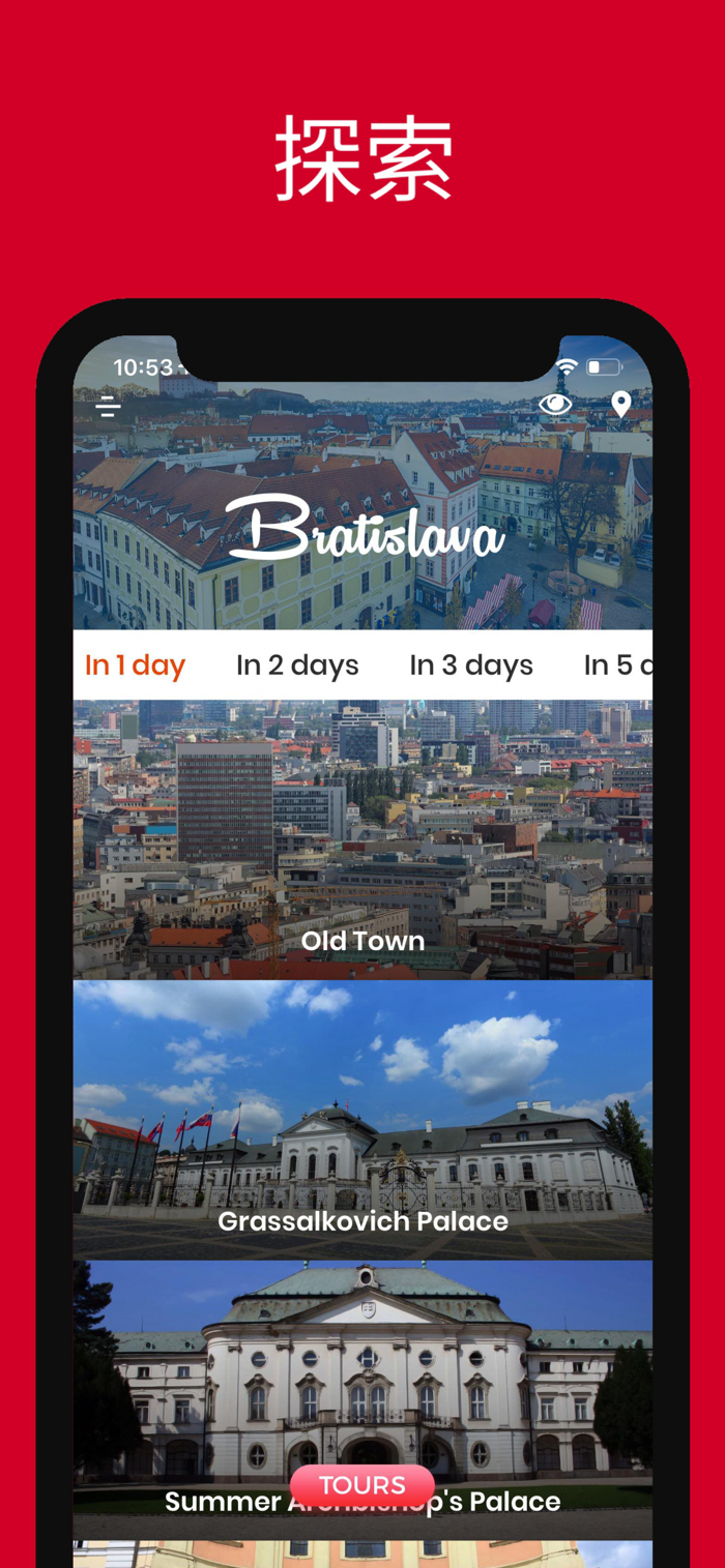 同其他的旅游指南不同,您能够使用最好的iPhone和iPad工具发现城市-增强现实技术AR – 只需点击一下AR 按钮,转身360 °并查看屏幕,我们的旅游指南会告诉您那些旅游热点在哪里、如何找到他们。您也可以上下滚动查看最近和最远的有吸引力的旅游景点。