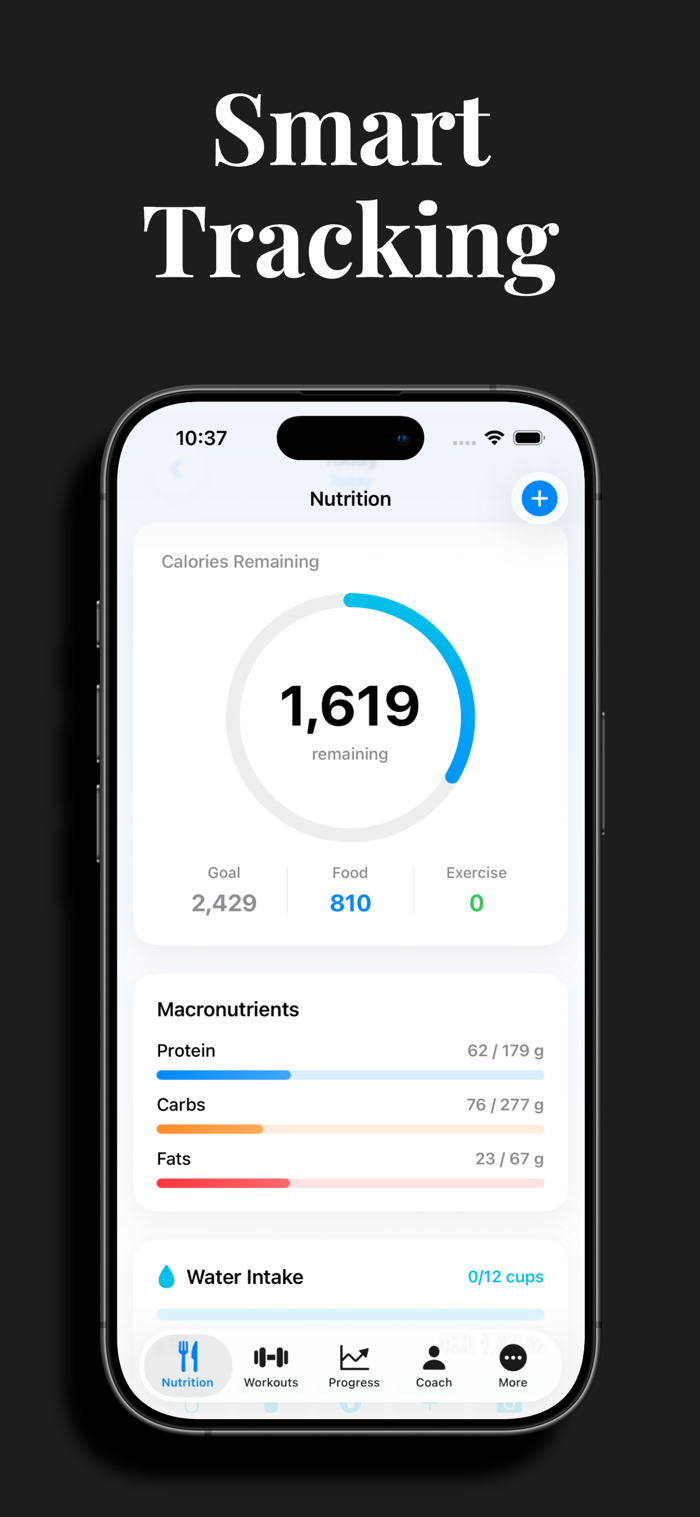- Water intake tracking with glass volume scanning (Premium Plus)