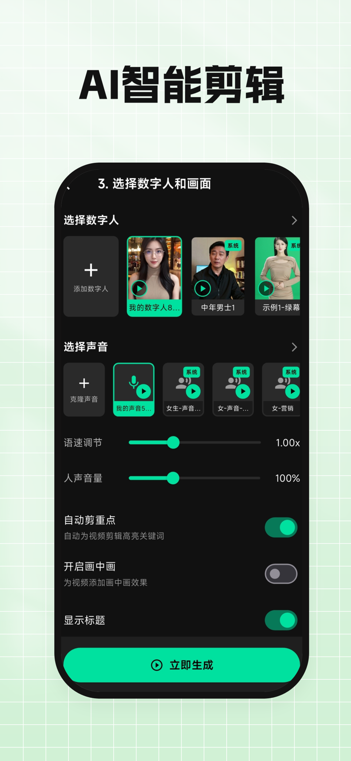 轻语IP智能体是专属AI内容创作助手。核心功能有:上传视频克隆数字人出镜;录制声音克隆专属声线;输入文案一键成片;粘贴链接分析博主风格生成选题文案;系统化管理IP档案输出创意;上传视频或音频提取文案;海量字幕模板一键套用;内置工具设计吸睛封面。开通会员畅享无限算力解锁全部功能,适合短视频创作者、品牌方等人群。