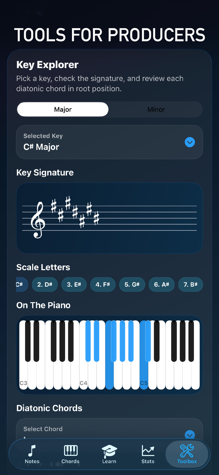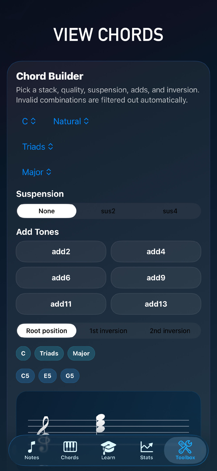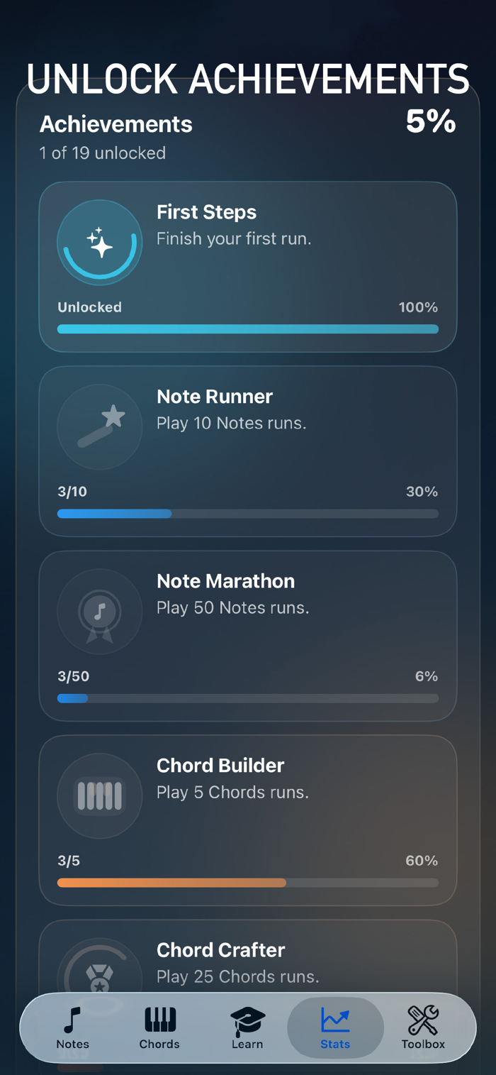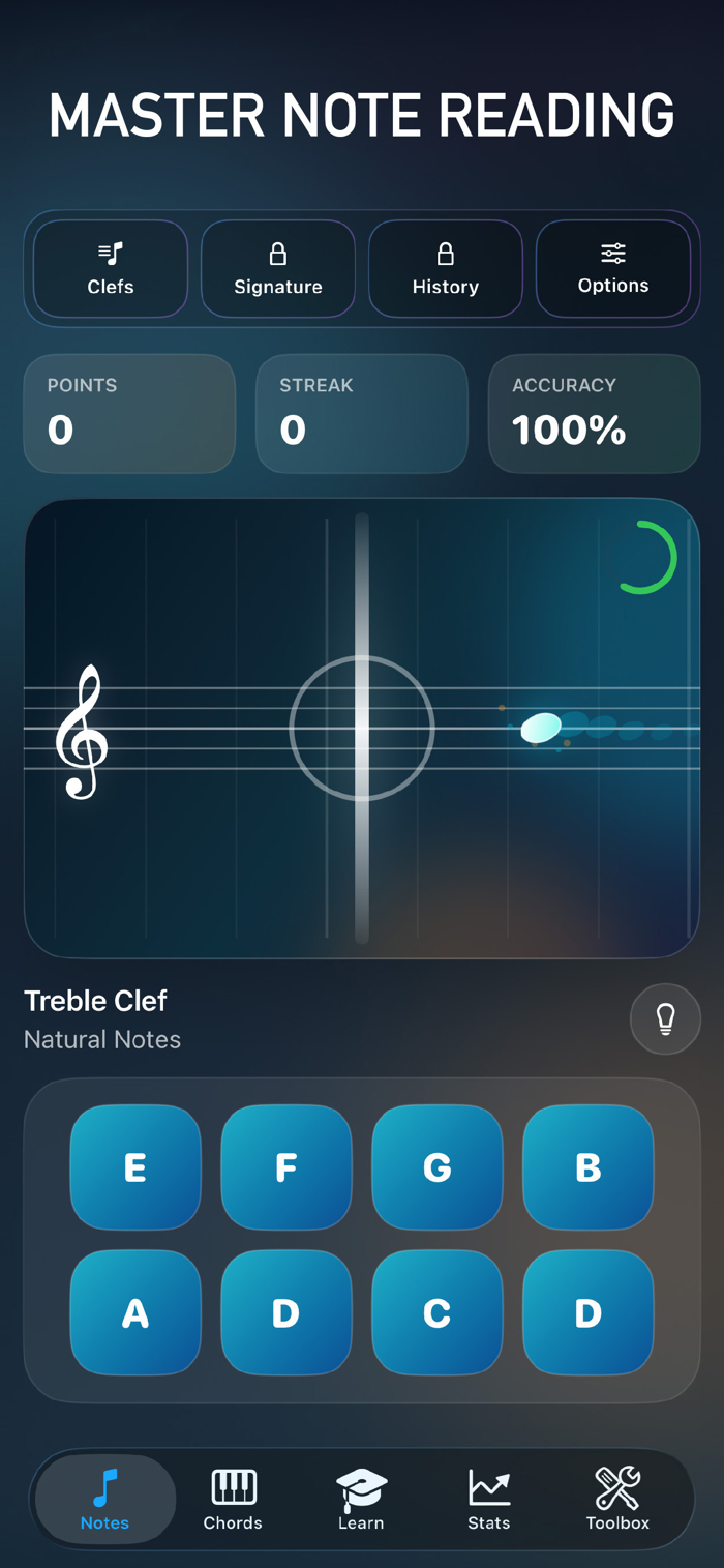Note Trainer助初学者及有一定基础的音乐人提升识谱等音乐技能。它能帮用户练习读五线谱及加线音符,训练多种谱号,学习调号、音阶等乐理知识,识别和弦类型并构建复杂和弦,还能在五线谱与钢琴上对照看音符,通过工具跟踪学习进度与成果。内置学习工具如Key Explorer、Chord Builder等,还有引导课程,将音乐理论转化为清晰练习,提升音乐能力。