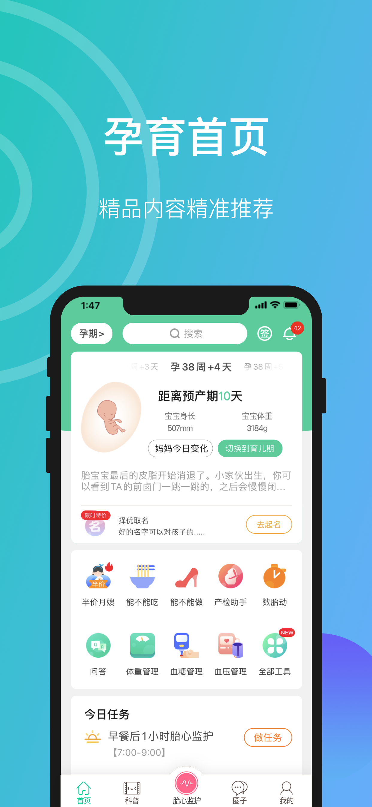 包含数胎动、产检提醒、疫苗提醒、成长发育评估、睡眠记录等孕期、育儿期等实用小工具。