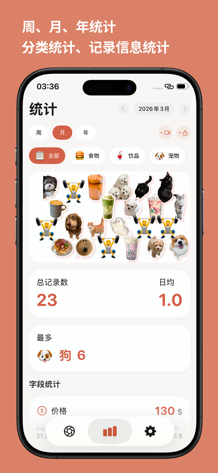 • 记录食物、饮品、运动、宠物、穿搭与日常