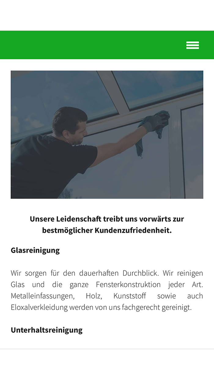 Der Betrieb Engels Reinigung hat seine Tätigkeit im Jahre 2006 aufgenommen. Das Unternehmen, welches von Marcel Engels gegründet wurde, wird heute mit gleichem Umfang und Erfolg von Wioletta Engels weitergeführt. Unser Tätigkeitsfeld beinhaltet Glas-, Polster-, Teppich-, Fenster- und Unterhaltsreinigung. Wir betreuen private, gewerbliche sowie großindustrielle Kunden. Unsere langjährige Erfahrung macht uns zum Spezialisten für fachmännische Reinigungen aller Art. Dies beteutet für Sie, dass wir auf eine grosse Bandbreite an professionellen Lösungsmöglichkeiten zurückgreifen können. Unser kundenfreundlicher Auftritt und fürsorgsamer Umgang haben in der Vergangenheit dazu beigetragen, dass wir über 650 Kunden zurfriedenstellen konnten. Wenn Sie sich auch einen Eindruck von unserer gewissenhaften Arbeit machen möchten, würden wir uns freuen, bald von Ihnen zu hören.