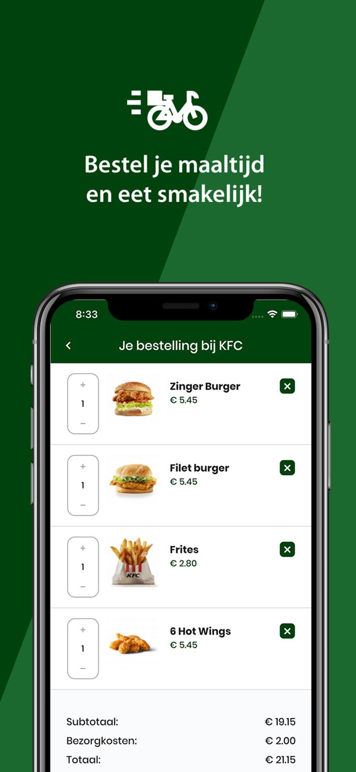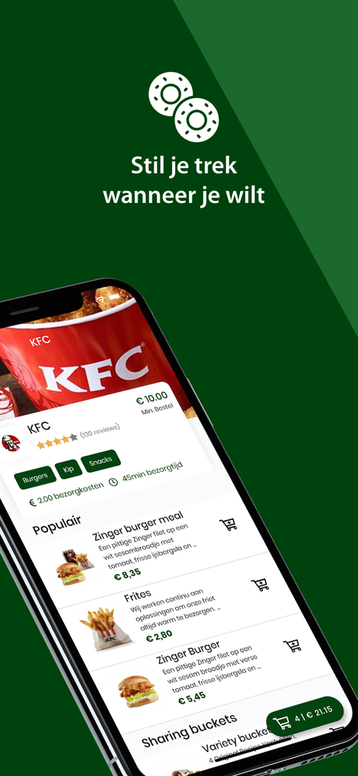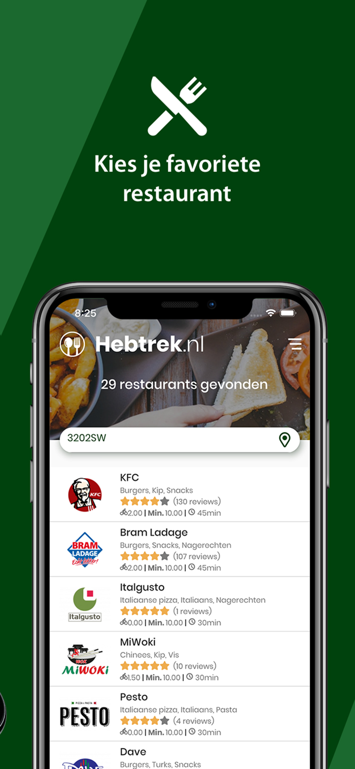轻松订购美食?这几乎难以想象,但借助Hebtrek.nl应用程序,我们让你更轻松地在线订购心仪的餐食。从脆皮鸡肉菜肴到街角的中餐。只需几个简单步骤,你就能订购例如肯德基、赛百味、布拉姆·拉达格、东方、米沃基、戴夫、亚特兰蒂斯等众多餐厅的喜爱餐食。你喜爱的餐食通常会在30 - 45分钟内由餐厅送达(取决于繁忙程度)。