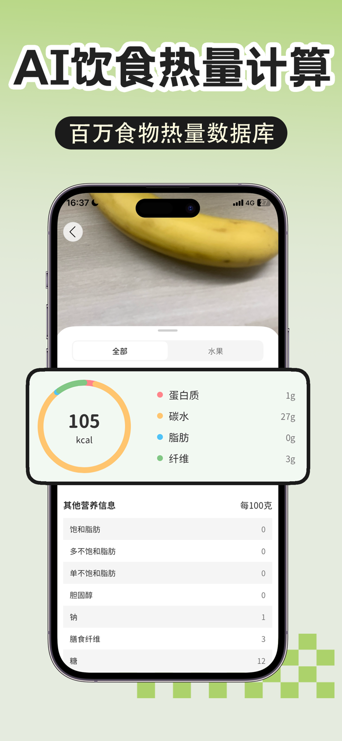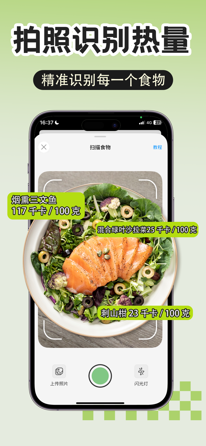 拍一张照片,几秒完成记录,热量和营养一目了然——不用表格,不费脑子。