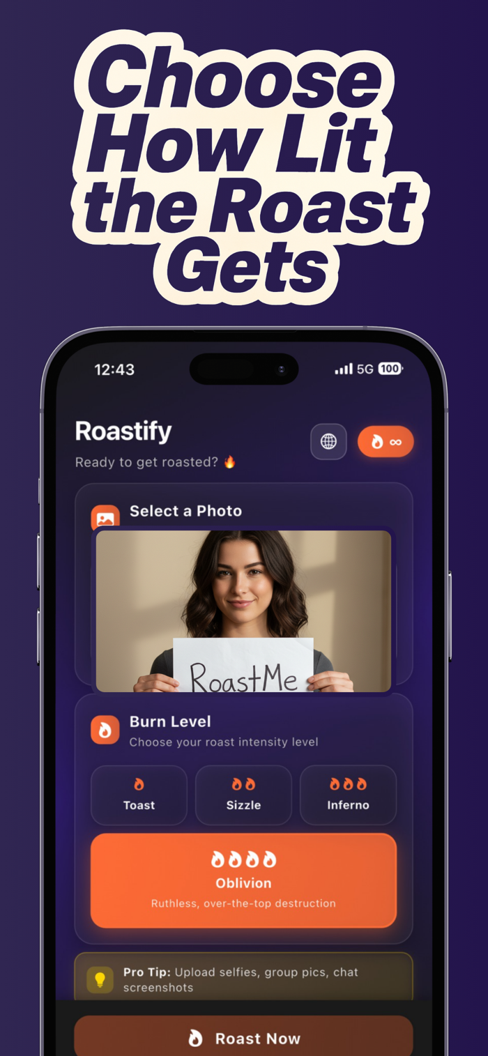 Powered for maximum fun, Roastify lets you start roasting instantly. Bring the heat to every convo and make every moment a roast-fest!