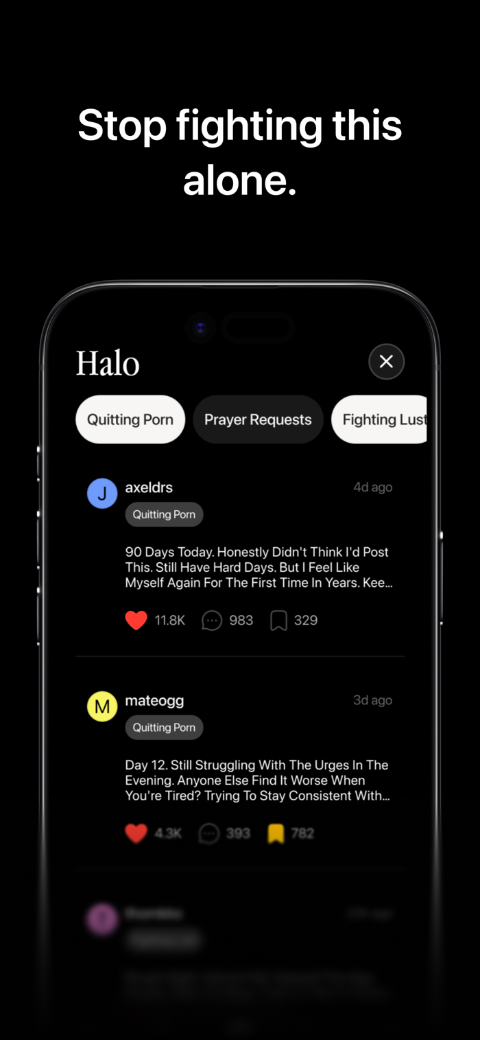 The shame of this struggle thrives in silence. Halo connects you with a community of believers who understand. No judgment, no pretense. Just brothers walking the same road toward freedom.