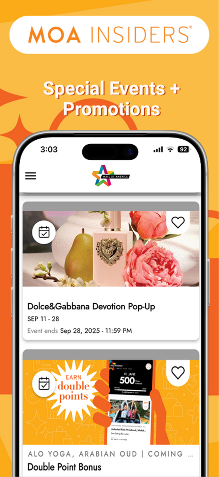 MOA Insiders® is an exciting new way to get the most out of every trip to Mall of America, whether you're looking for that special gift or enjoying a day out with your friends and family.