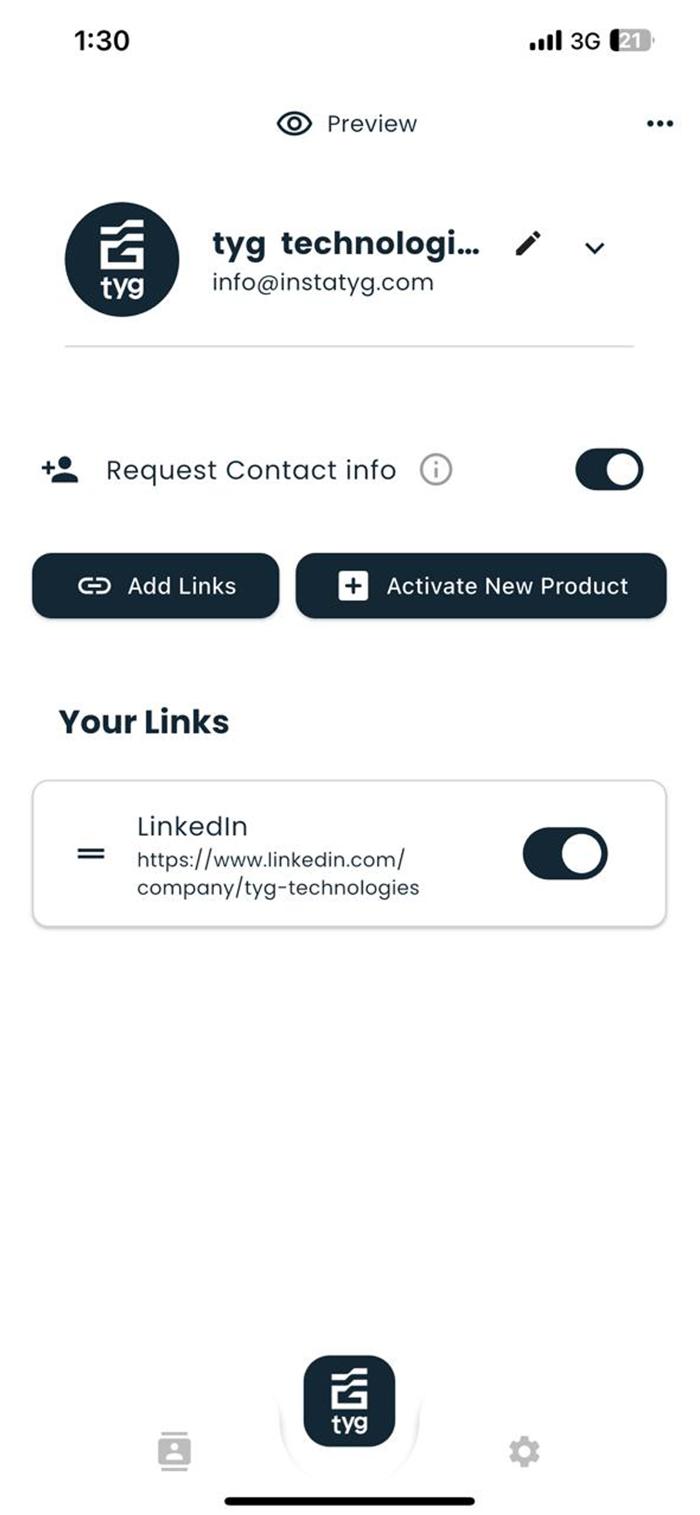 TYG empowers professionals and businesses to make meaningful, lasting connections without the need for printed materials—saving costs, time, and the environment. With our NFC-powered solutions, sharing your professional profile, business links, and social networks is simple, efficient, and eco-friendly. Our commitment to sustainability drives us to eliminate paper waste while offering cutting-edge technology for a seamless networking experience.