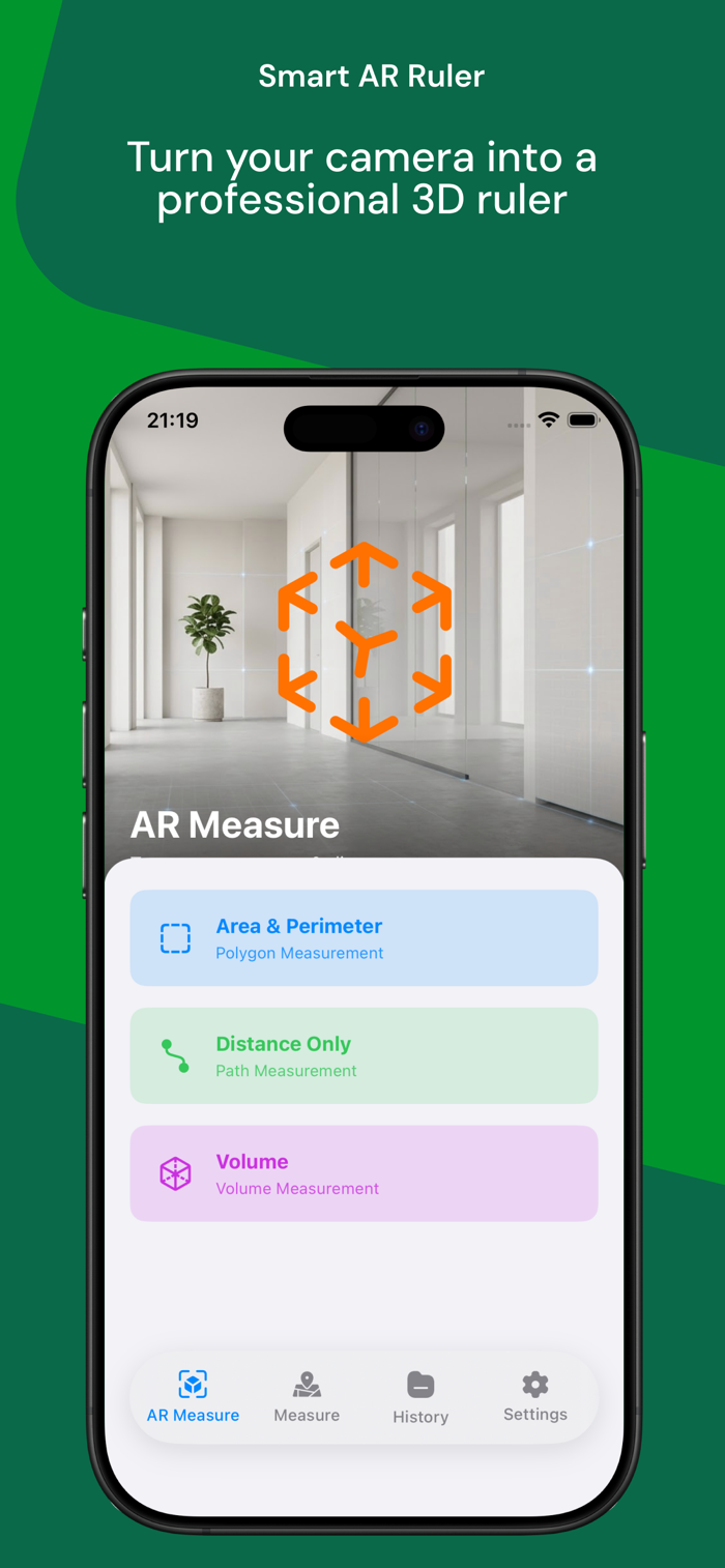 - Save AR Snapshots: Seamlessly save your AR measurements with stunning 3D wireframes and metric labels right into your history.