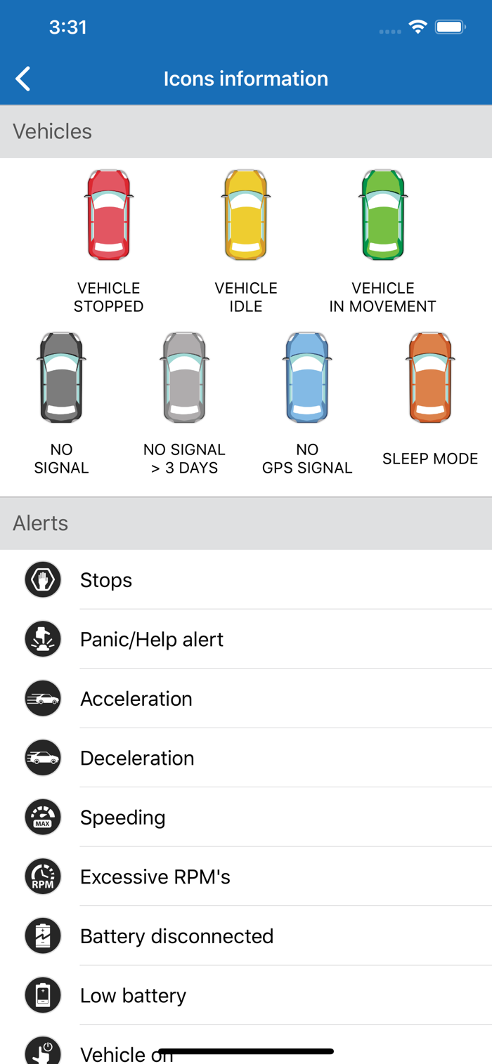 GS Trackme App allows you to track vehicles in real time. Provides the option to select a single vehicle to track it more closely. Color code to easily locate vehicles in movement, or going over speed limit. Speed reported in Miles per hour. Map and satellite view.