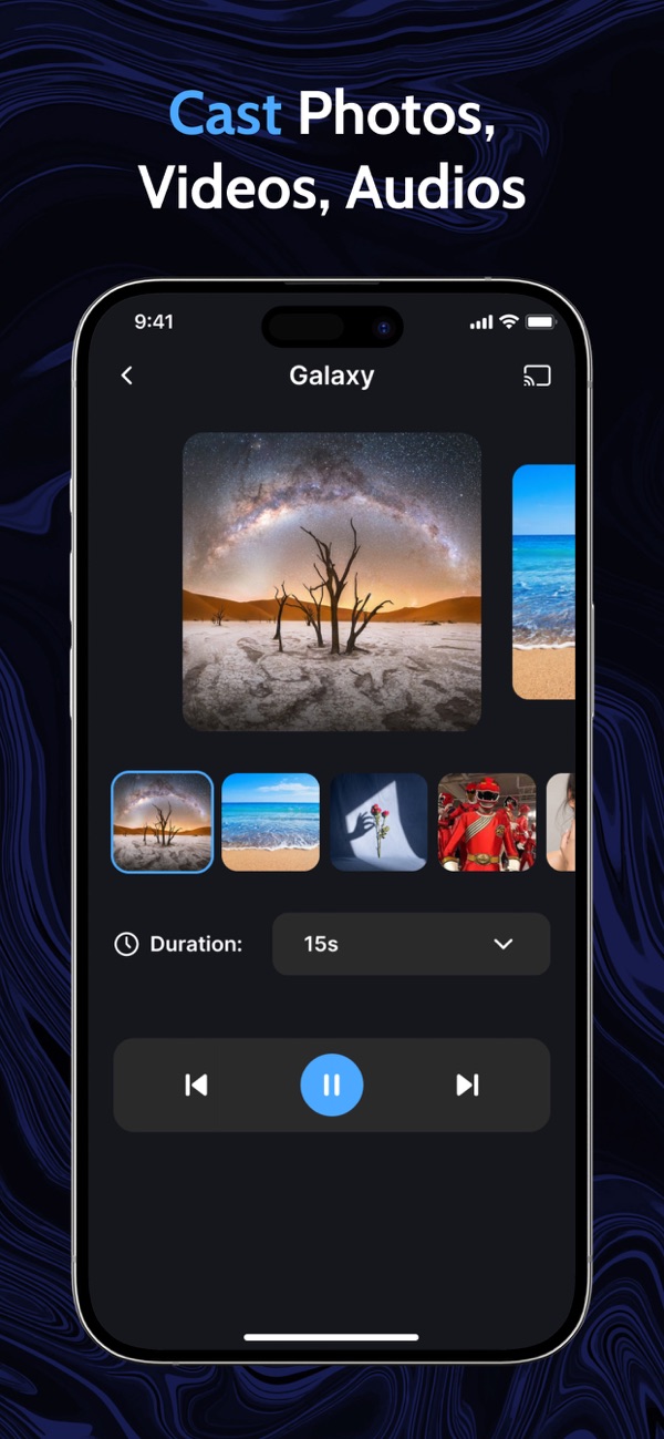 - Connect device with your TV and cast (videos, photos, audios supported)