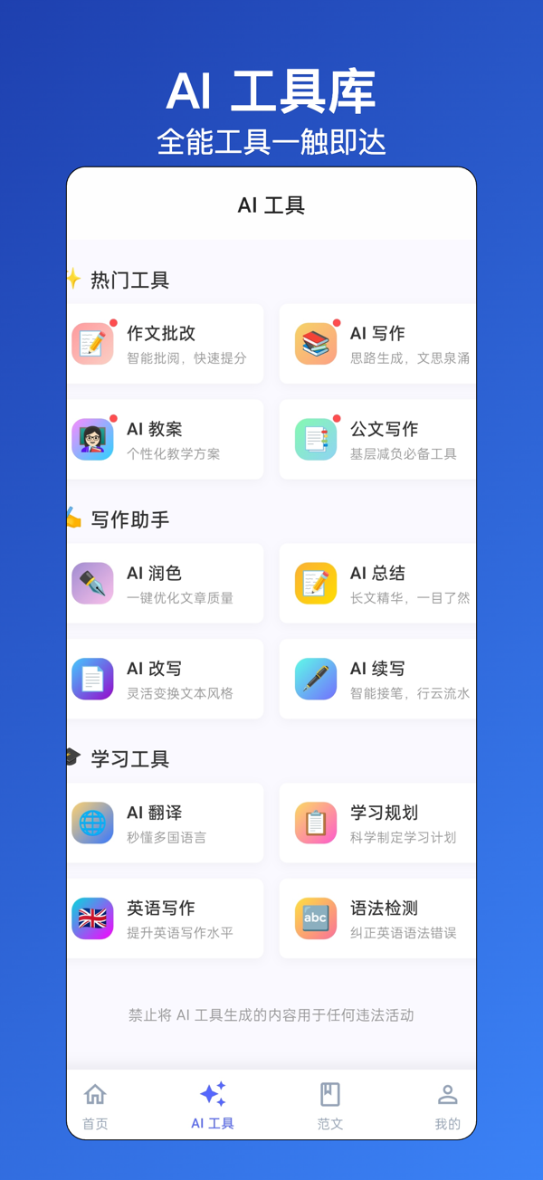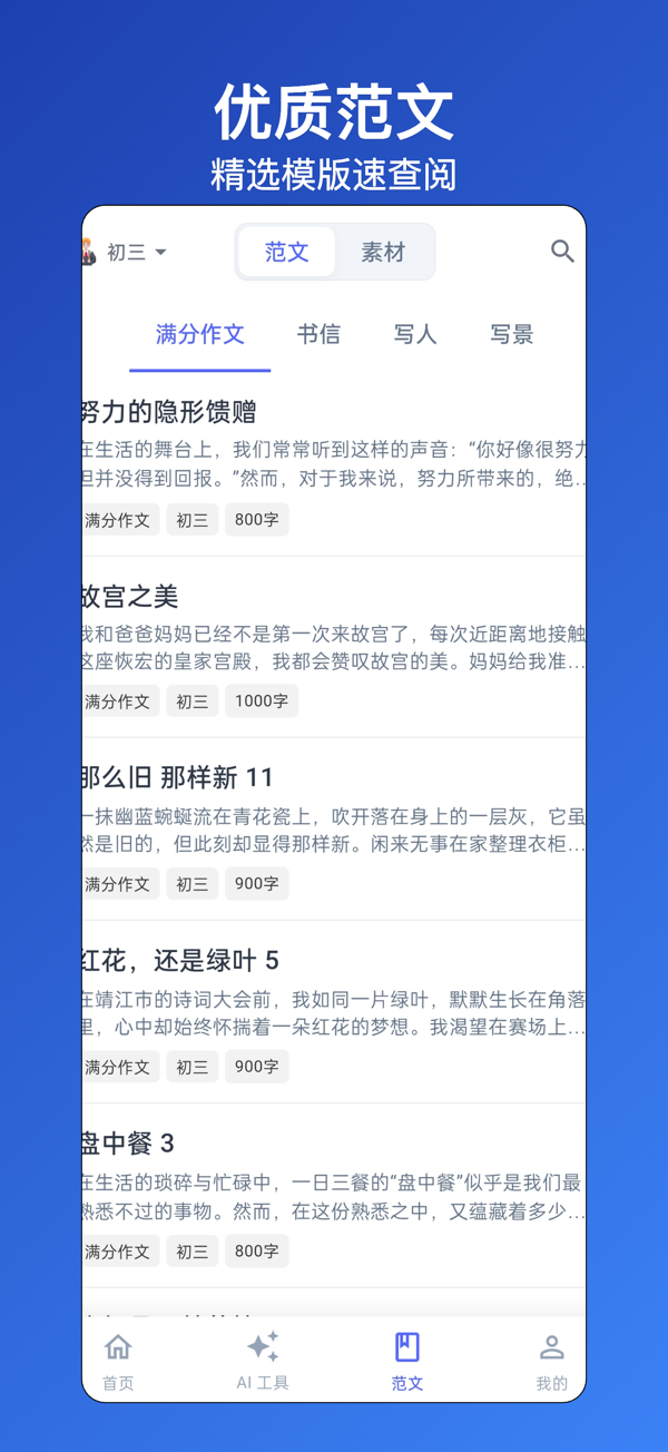 覆盖从小学到职场的全场景范文库,历年满分作文与公文模板随心查,解决灵感枯竭。