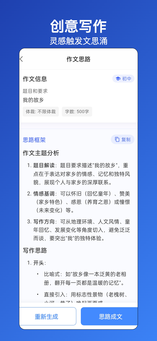 授人以鱼不如授人以渔,输入题目即刻生成多维度写作思路与大纲,引导孩子自主思考,轻松构思优质作文。
