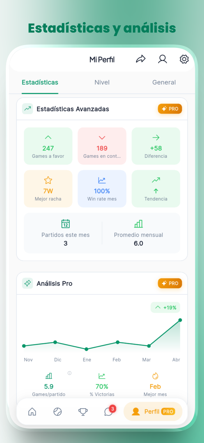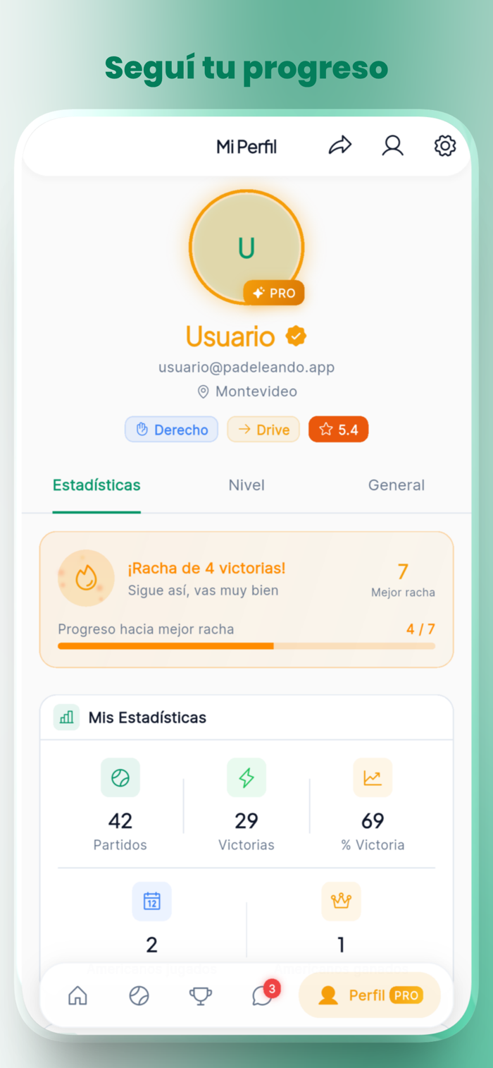 • Seguí tu progreso: victorias, rachas, partidos jugados