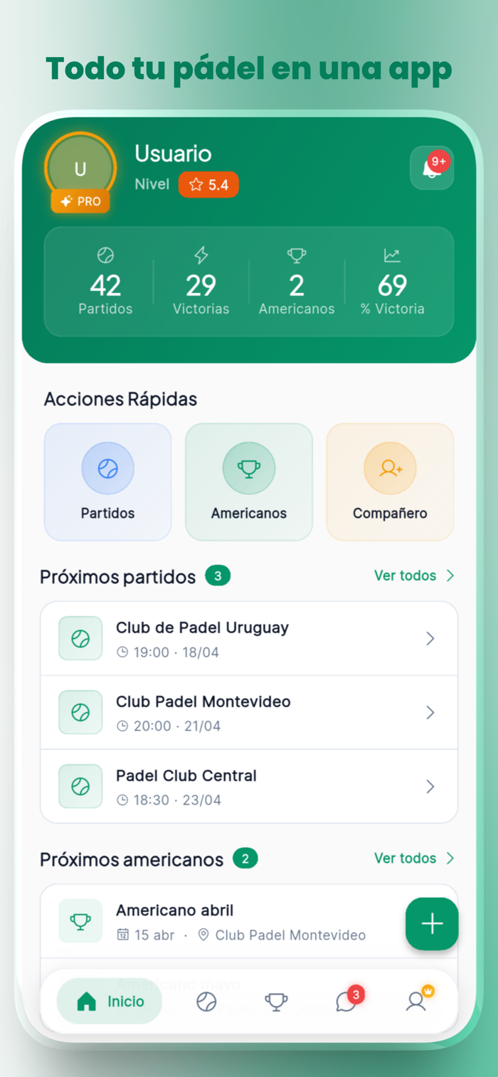 • Encontrá jugadores de tu nivel para partidos más parejos