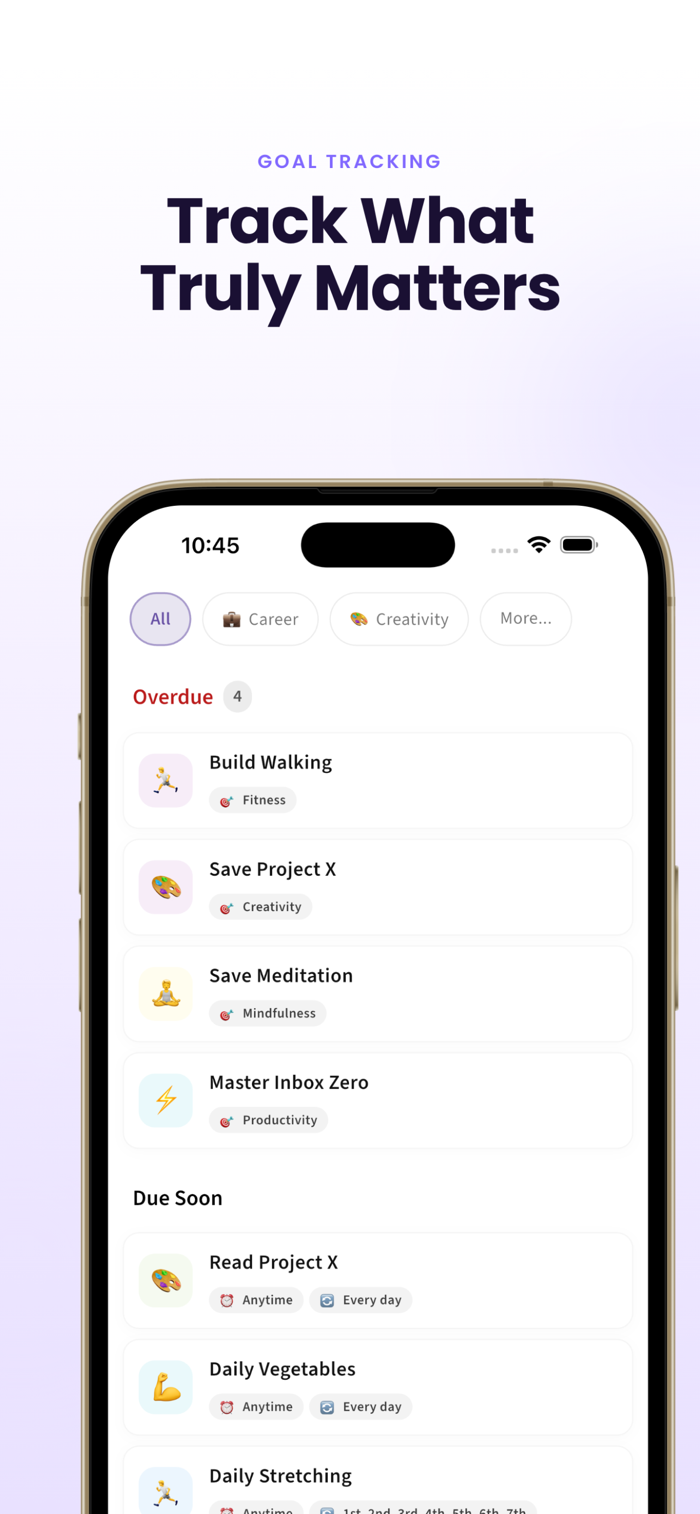 • 云同步:在所有设备上安全保存你的目标和日记(Pro)