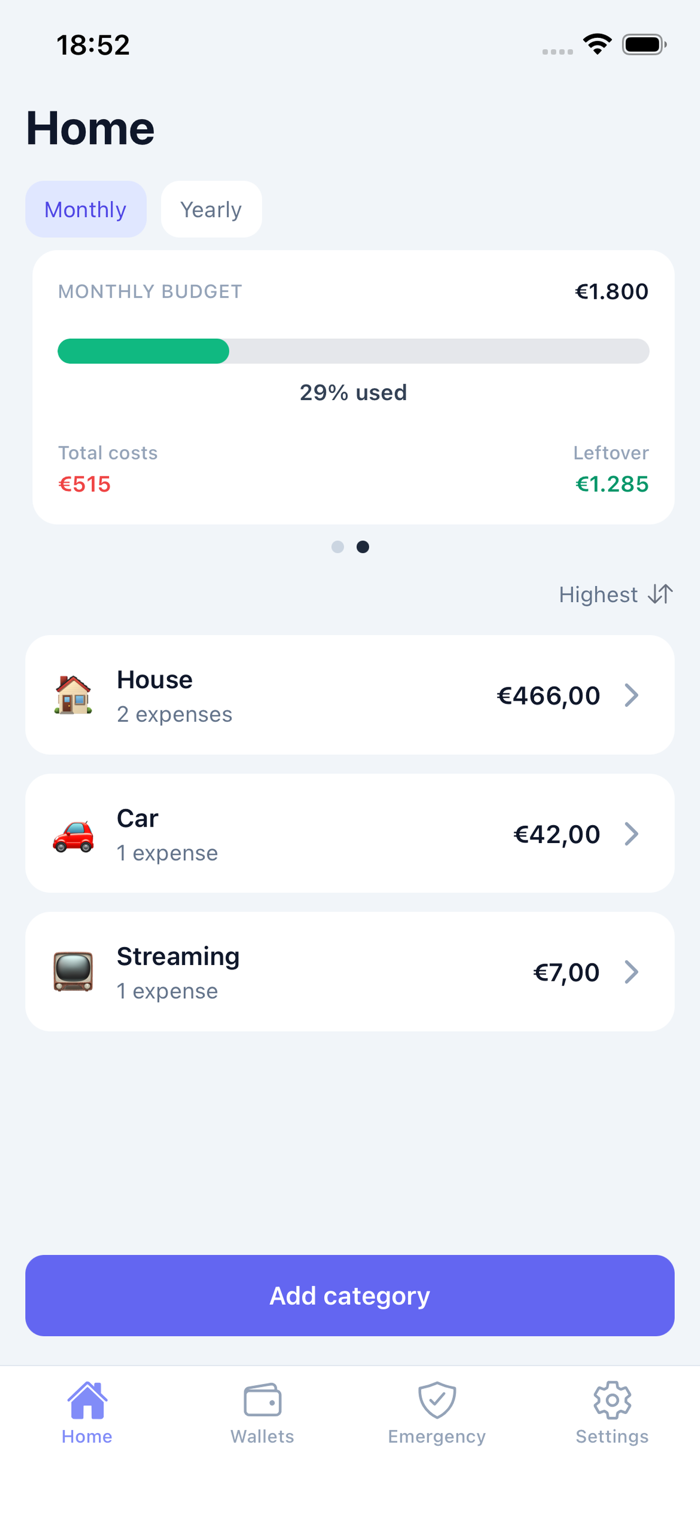 Fixo helps you take control of your finances with effortless expense tracking. Organize spending by categories and wallets, get clear insights into where your money goes, and build better financial habits — all in a clean, intuitive interface. Key Features: - Focus on fixed expenses across multiple wallets - Organize spending with custom categories - Calculate and manage an emergency fund - Simple, distraction-free design