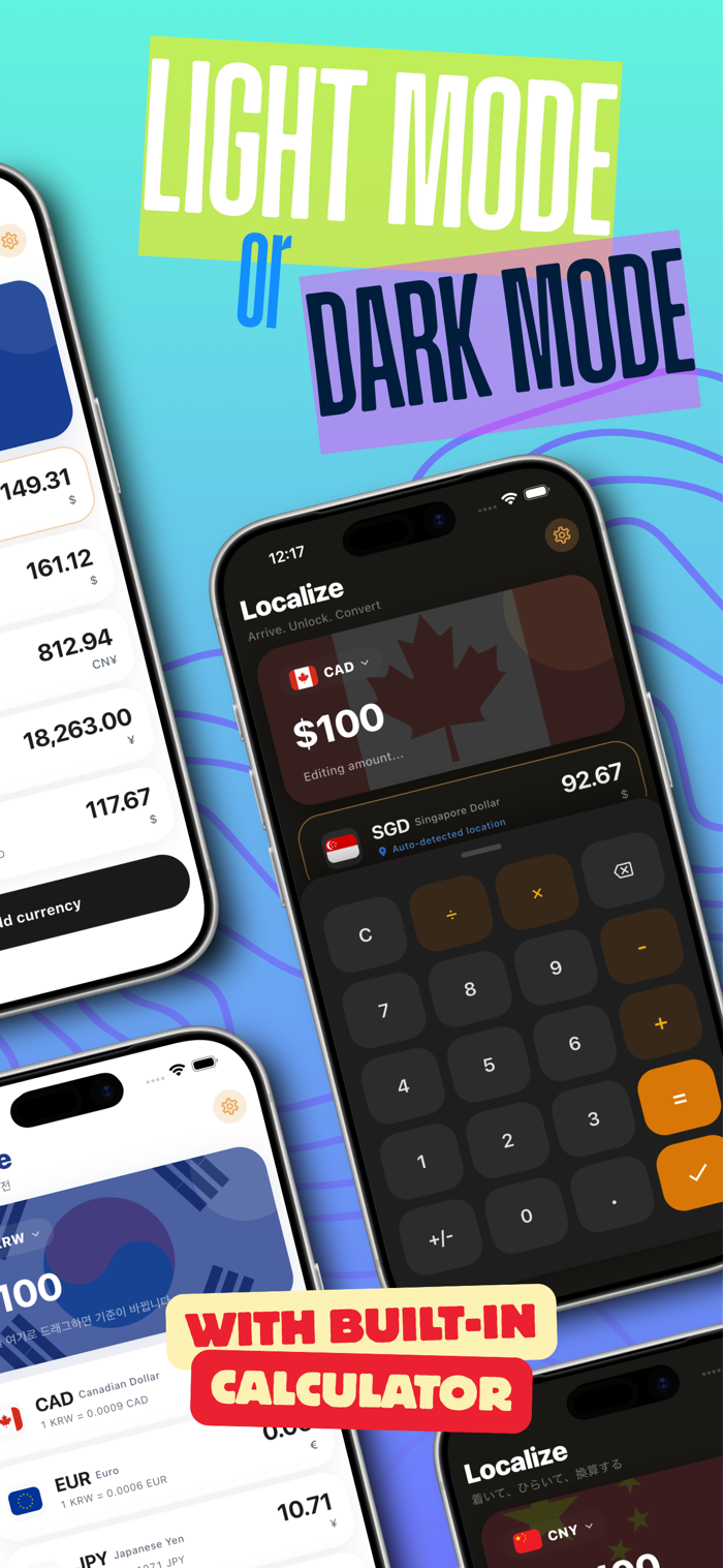 Currency conversion should not be complicated. We have stripped away the noise and built a premium, meticulously crafted interface that is a joy to use. With a sleek design and built-in calculator keypad (plus, minus, multiply, divide), you can split bills, calculate tips, and negotiate prices in seconds without ever leaving the screen.