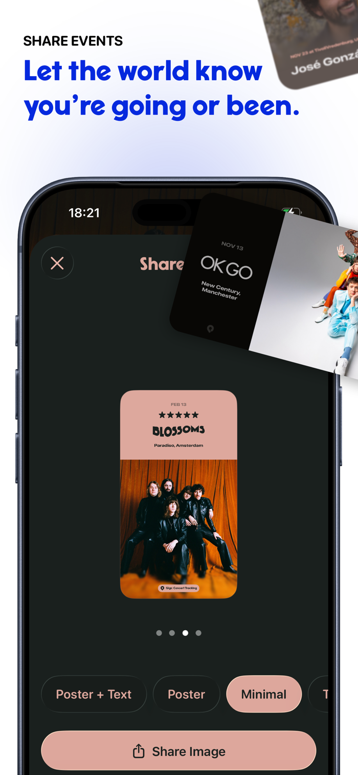 Gigs 是记录音乐会和音乐节、重温每一个高光瞬间的理想方式。专为搭载 Liquid Glass 的 iOS 26 设计,Gigs 让你的现场音乐生活变成值得收藏的故事。