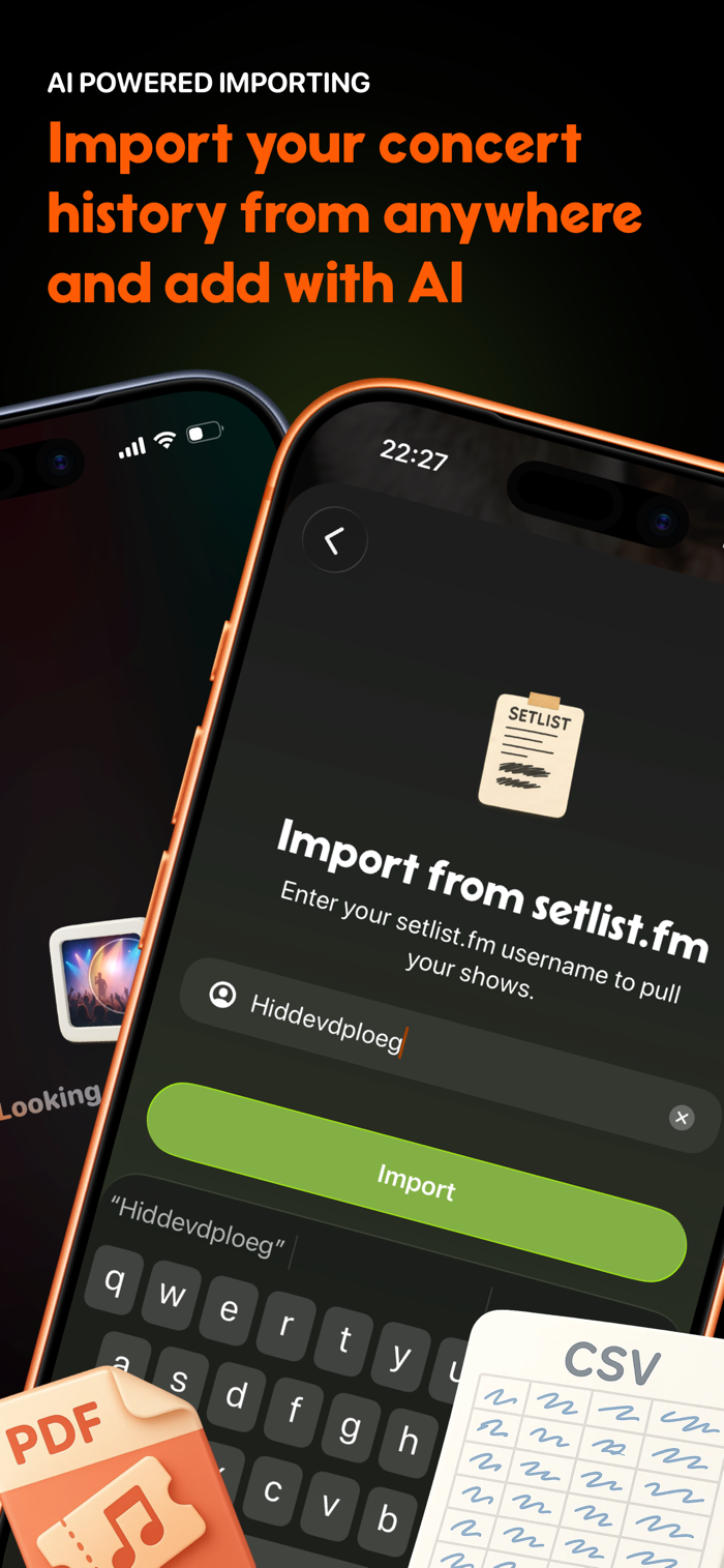 添加演出应该是几秒钟的事。借助 Apple Foundation Models 驱动的 AI,你只需导入电子票、邮件、截图或网页,Gigs 就会自动识别日期、场地、阵容和关键信息。少敲字,多期待。