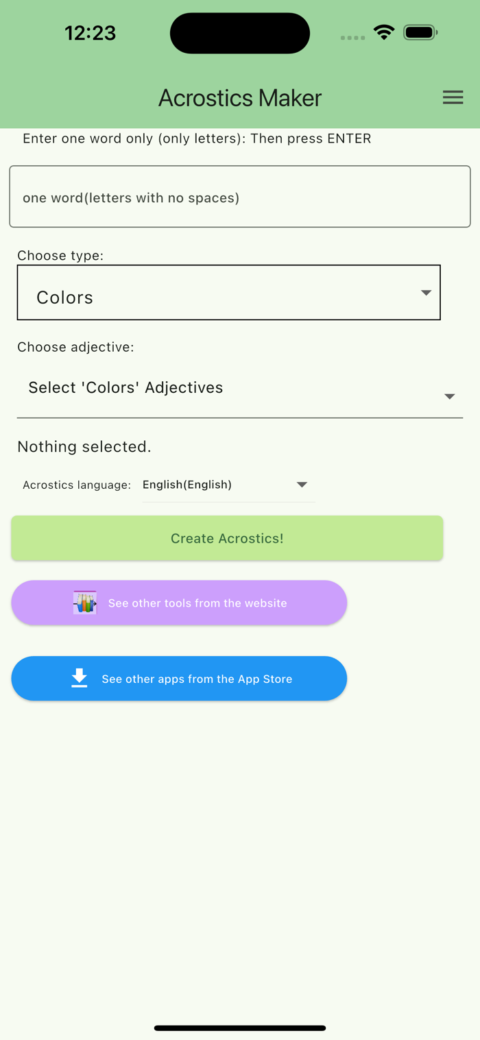 Acrostics maker是一款能为名字创作藏头诗,使名字成为首字母缩写词的工具,有助于记住事物关键特质。比如“aardvark”(一种非洲食蚁兽)可表示为African、Ants、Ravenous、Digging、Vampire、Alone、Represented、Kingdom 。