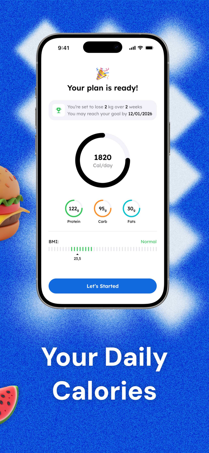 Set your goal to lose weight, gain weight, or maintain weight. Capple adapts calorie targets to your lifestyle.