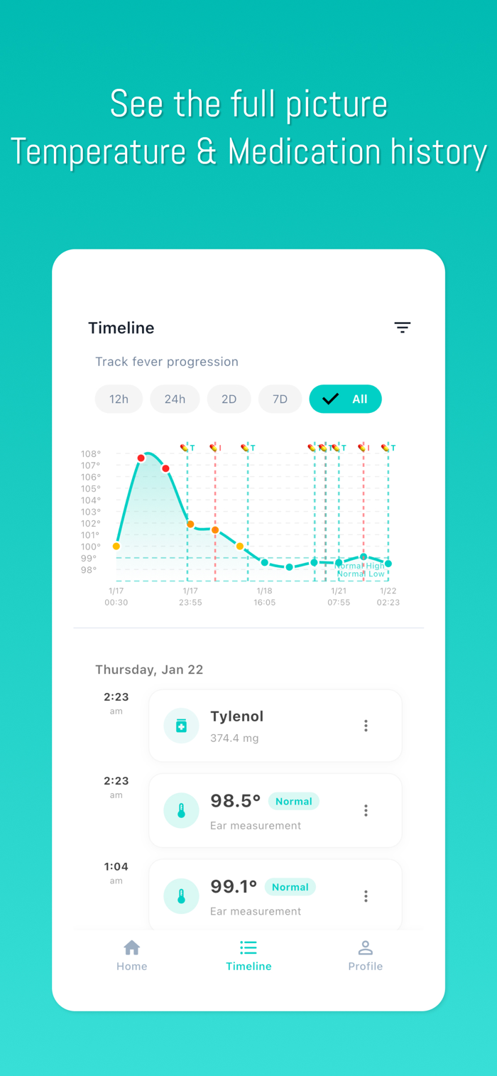 • 时间线:查看完整的发烧记录