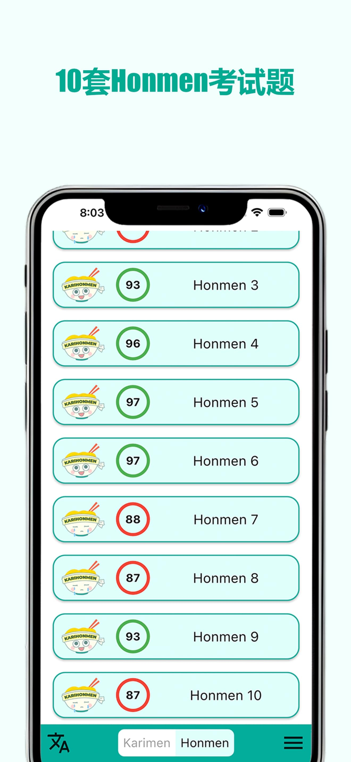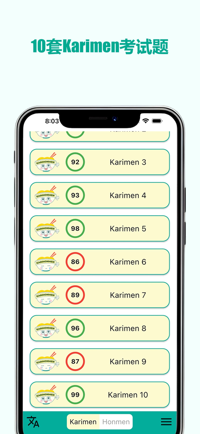 “KariHonmen – Karimen & Honmen”是日本驾照考试备考应用,支持Karimen、Honmen及外免切替笔试备考。界面简洁易用,支持离线学习,多语言适配。功能特色有大量练习题,基于最新考试内容整理,参考实际经验,题型贴近实战,还有智能学习、定期更新题目。主要功能包括模拟考试、即时出结果、错题复习,能节省时间助考生通过考试,适合各类日本驾照笔试考生。