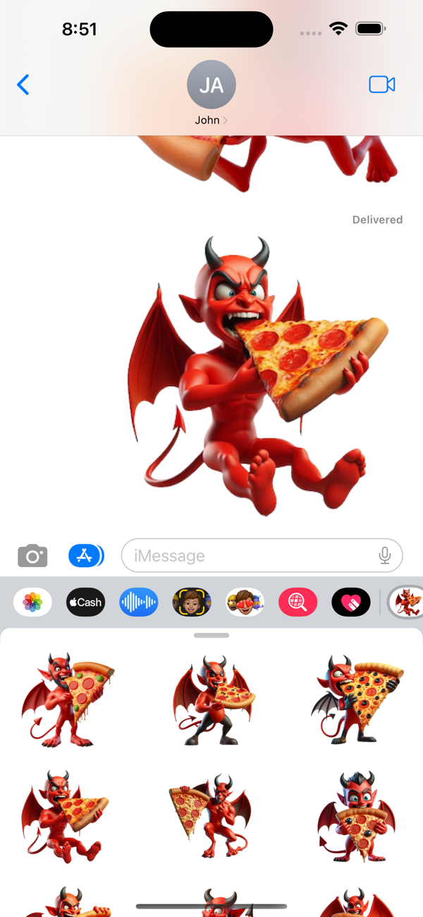 这是一套用于iMessage对话的恶魔披萨贴纸。