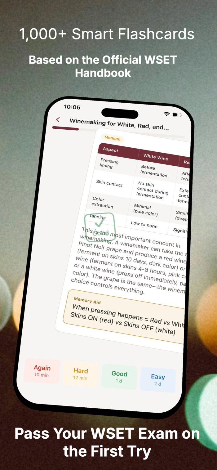 - 1,000+ expert-verified flashcards covering Viticulture, Winemaking, Principal Grapes, and Wine Regions