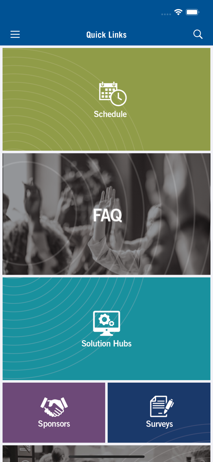 Stay informed throughout Connect: view your unique schedule, sponsor/solutions hub information, maps, speaker/session info, surveys, and more.