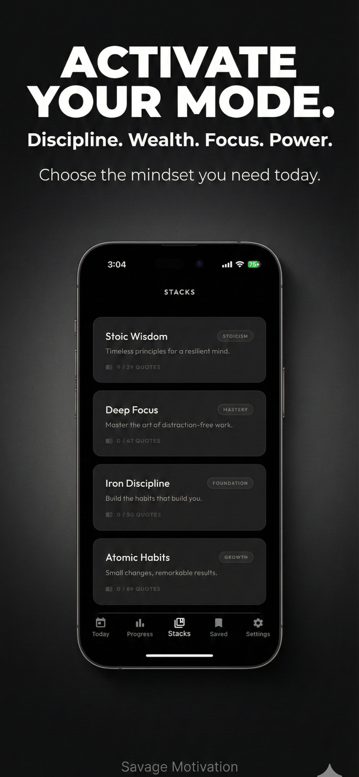Savage Motivation 不是普通语录应用,是每日心态伙伴。为不甘平凡者设计,无论创业、健身、学习或重塑生活,都能提供前进动力。有强大每日语录,聚焦自律、坚韧、成功等,非泛泛之谈,能激发行动强化心态。还具备简洁优质暗主题体验,可收藏喜爱语录、分享高质量图片,用作锁屏或壁纸灵感。