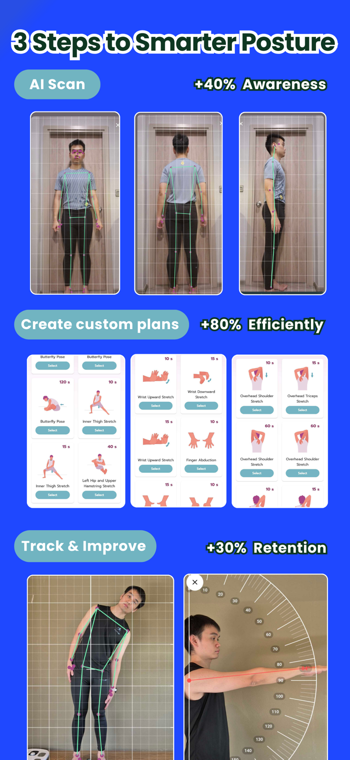 Scan your posture, understand what’s happening with your body, and follow personalized exercises to improve alignment, mobility, and movement quality.