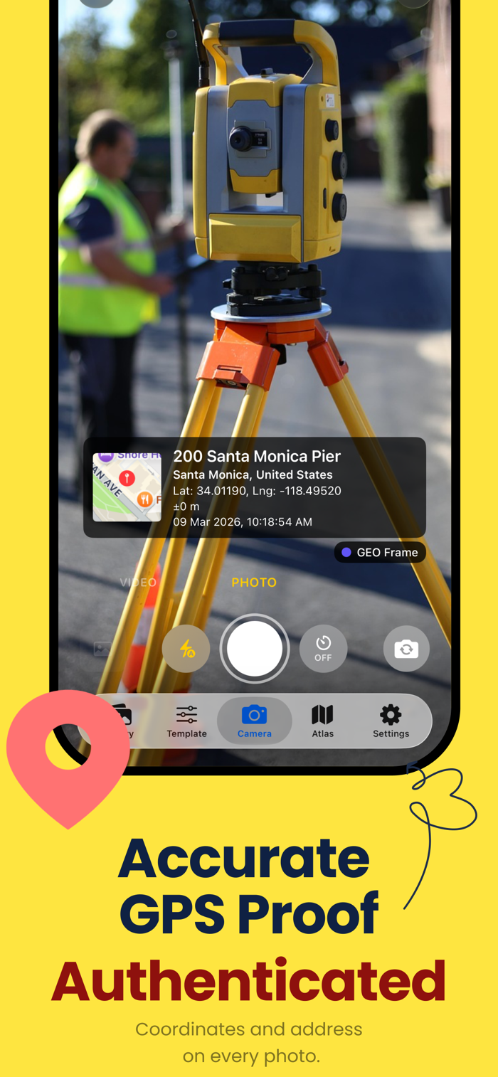 Capture photos with precise location information using GeoFrame – GPS Map Camera. Instantly add GPS coordinates, maps, timestamps, and location details to every photo you take.