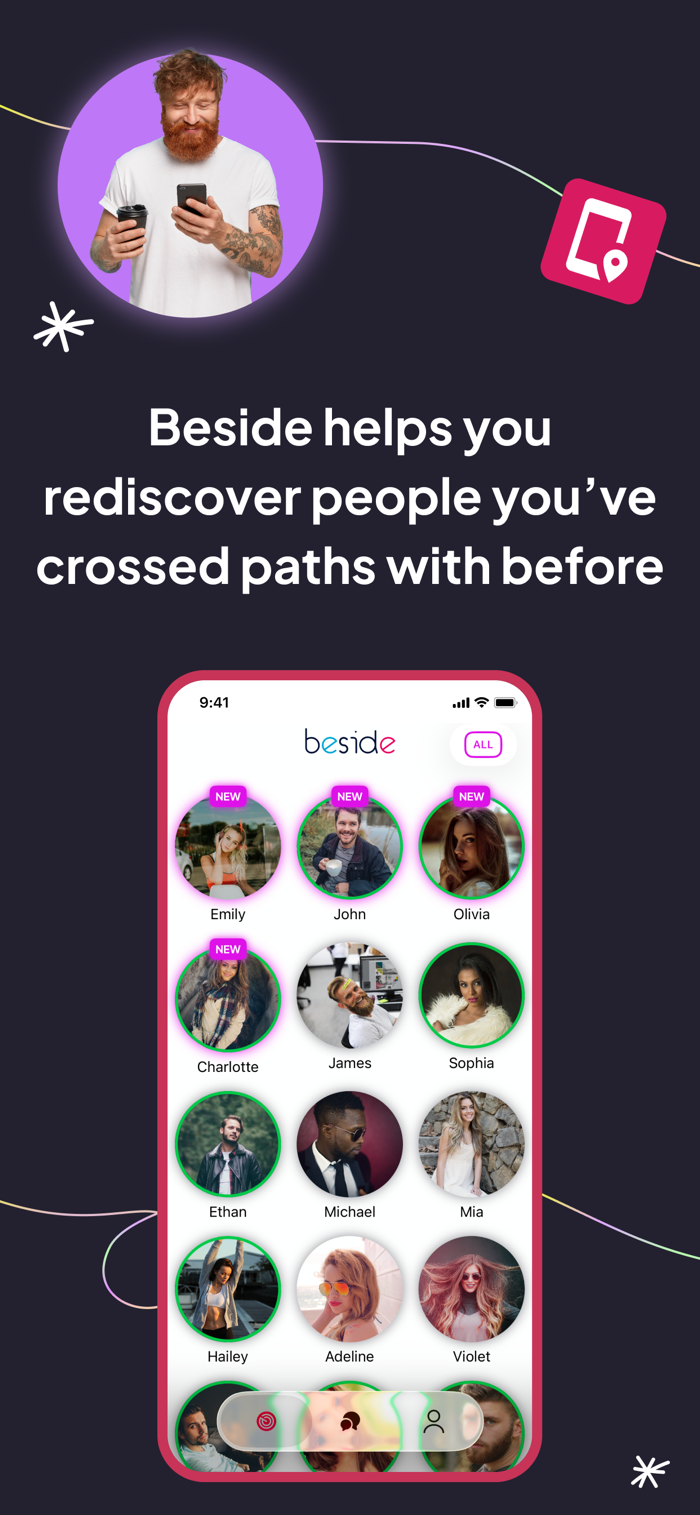 Beside is an innovative app that helps you rediscover the people you’ve crossed paths with in real life — anyone you see or anyone nearby.
