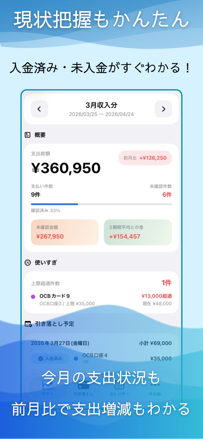 「Ochibi」で、毎月の支払いをスマートに管理し、安心できる家計ライフをサポートします。