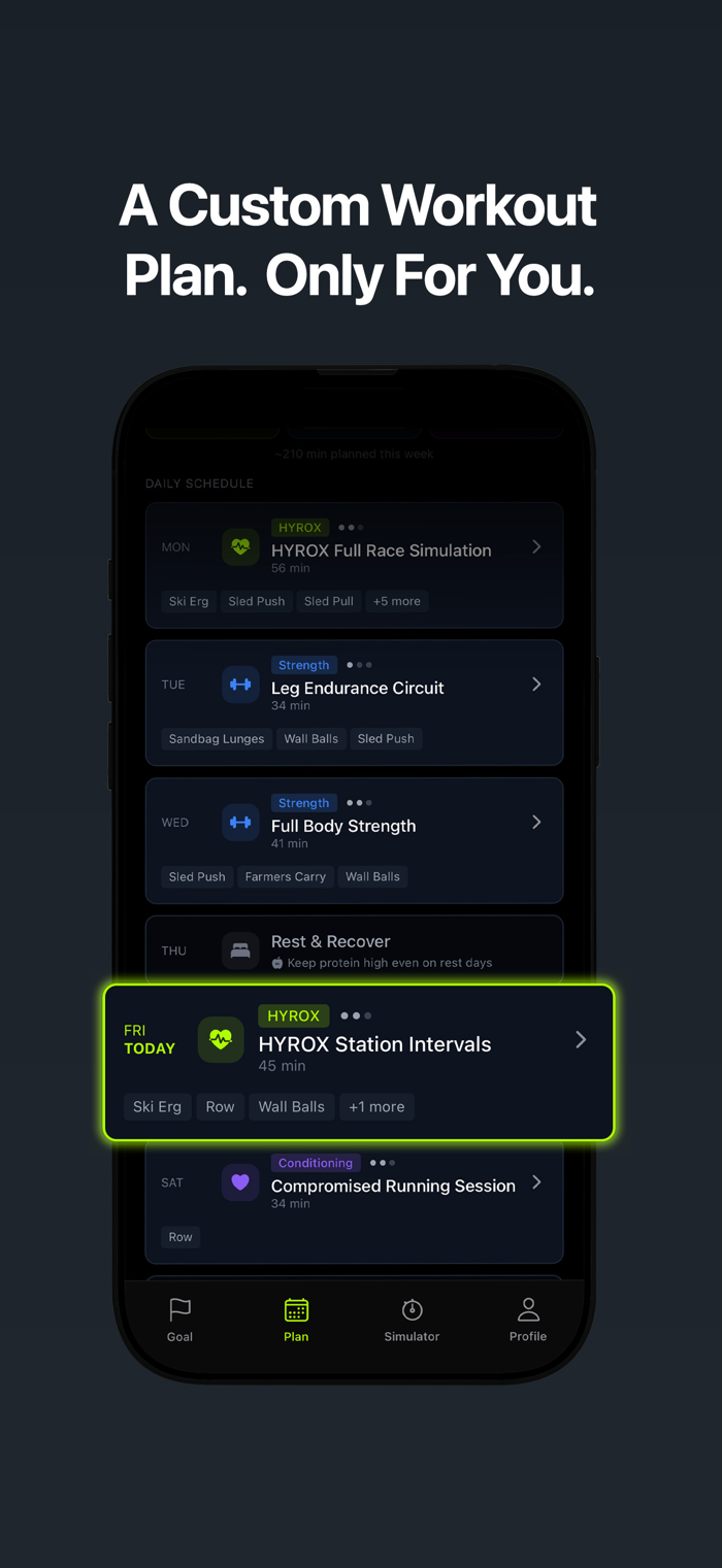 FORMD是一款基于目标的HYROX训练应用程序,旨在帮助你从当下的状态提升到比赛日的自信状态。