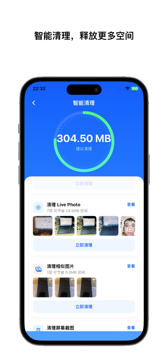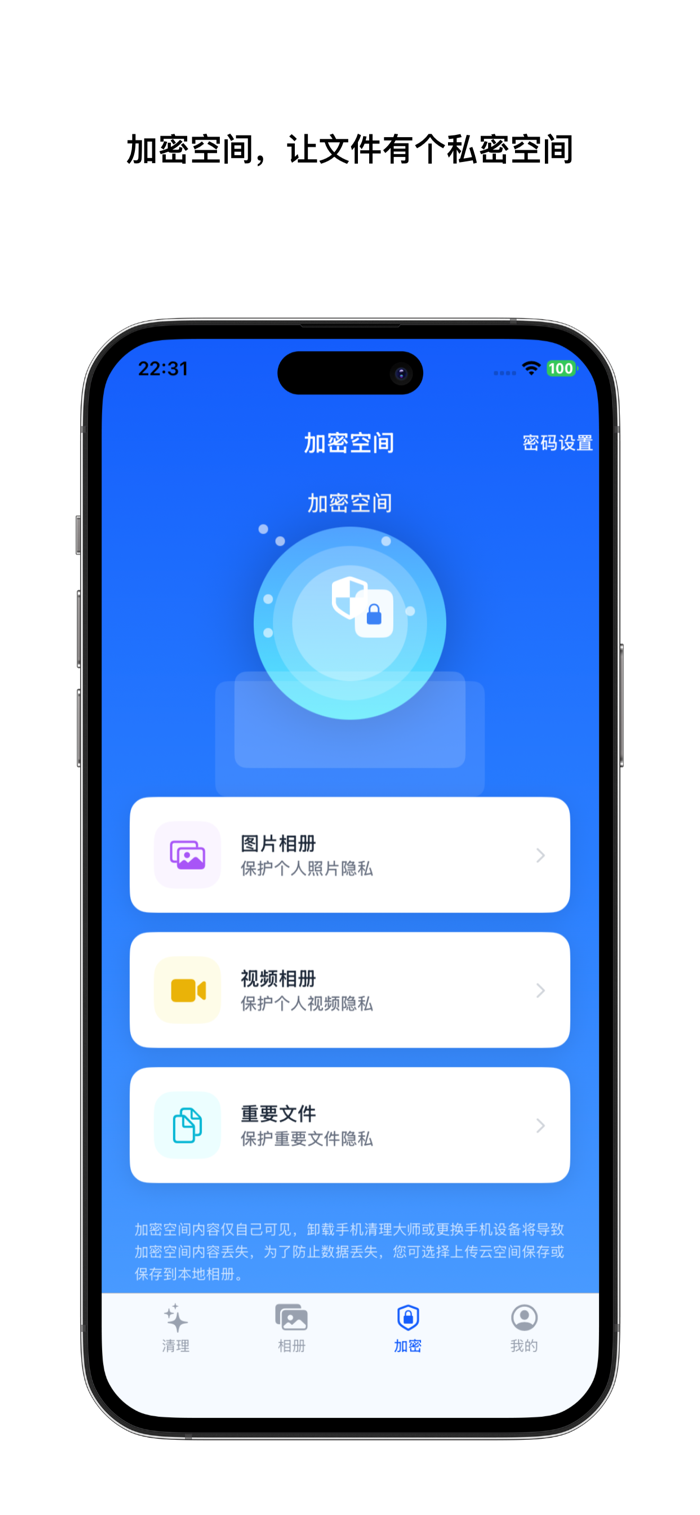 手机清理大师为照片多、存储紧张的用户提供图片视频压缩、相册整理、相似模糊照片处理、截图与动态照片管理、加密私密空间等功能,在保留清晰度前提下释放手机空间,让相册整理与图片发送更轻松。可从清理页了解存储情况进入处理流程,相册页支持分类浏览扫描,压缩流程简单直观,加密页保护私密内容,注重本地处理与隐私体验,适合多种人群与场景。