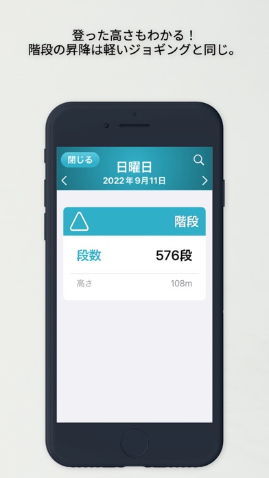 軽いジョギングと同じ有酸素運動ができる階段(登った高さ)も計測できる。