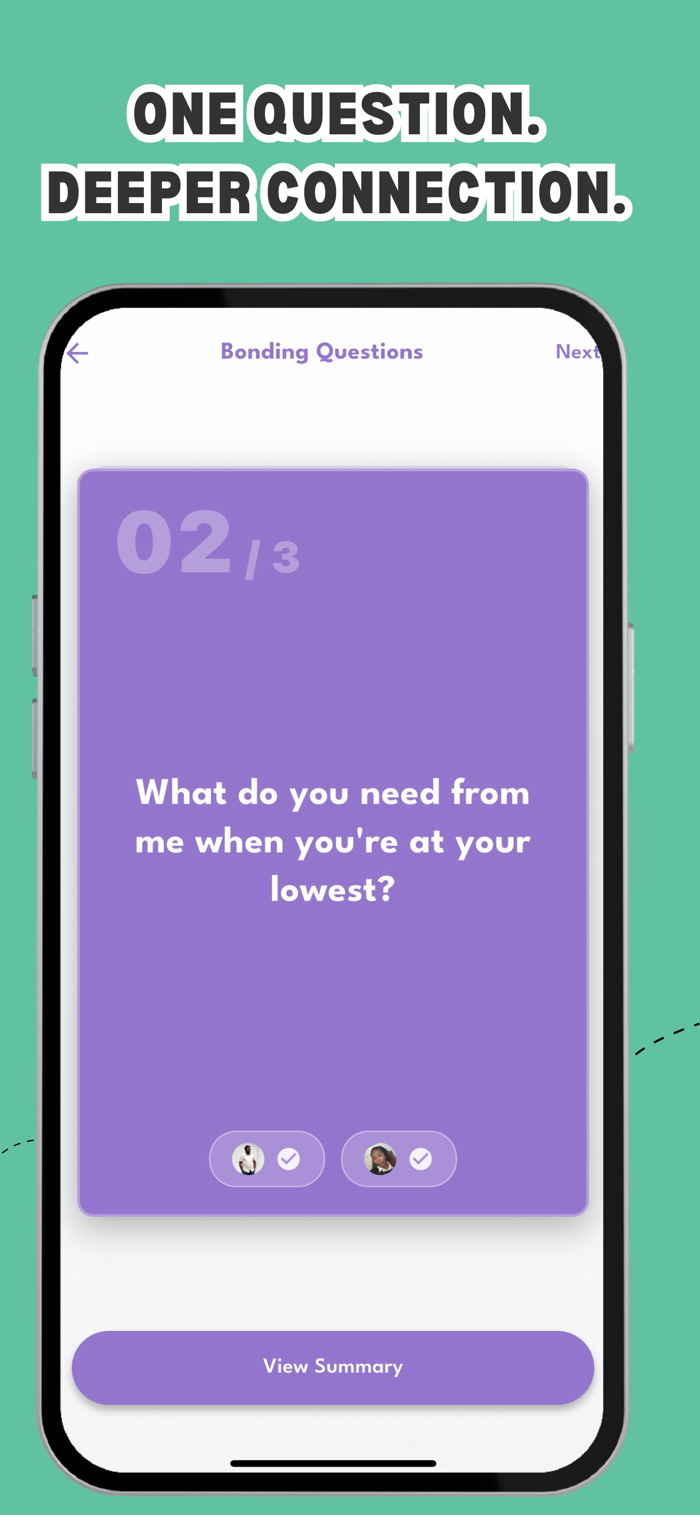 Bond44助力情侣通过日常活动和有意义时刻巩固关系,无论新恋情还是多年伴侣,都能借由有意联结更亲密。免费创建个人资料并与伴侣连接,浏览多类别活动,私下作答后共同揭晓答案,还能随时间追踪关系历程,有专属私密空间。可选高级订阅,解锁独家高级类别、高级对话主题,享无广告体验,一人订阅两人尊享,有周、月、年订阅可选。