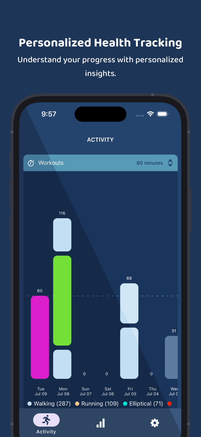 FitBy将你的健康数据转化为清晰、美观的图表,帮助你追踪健身历程,并对你的健康状况做出明智决策。借助易于理解的见解,保持动力并掌控一切。