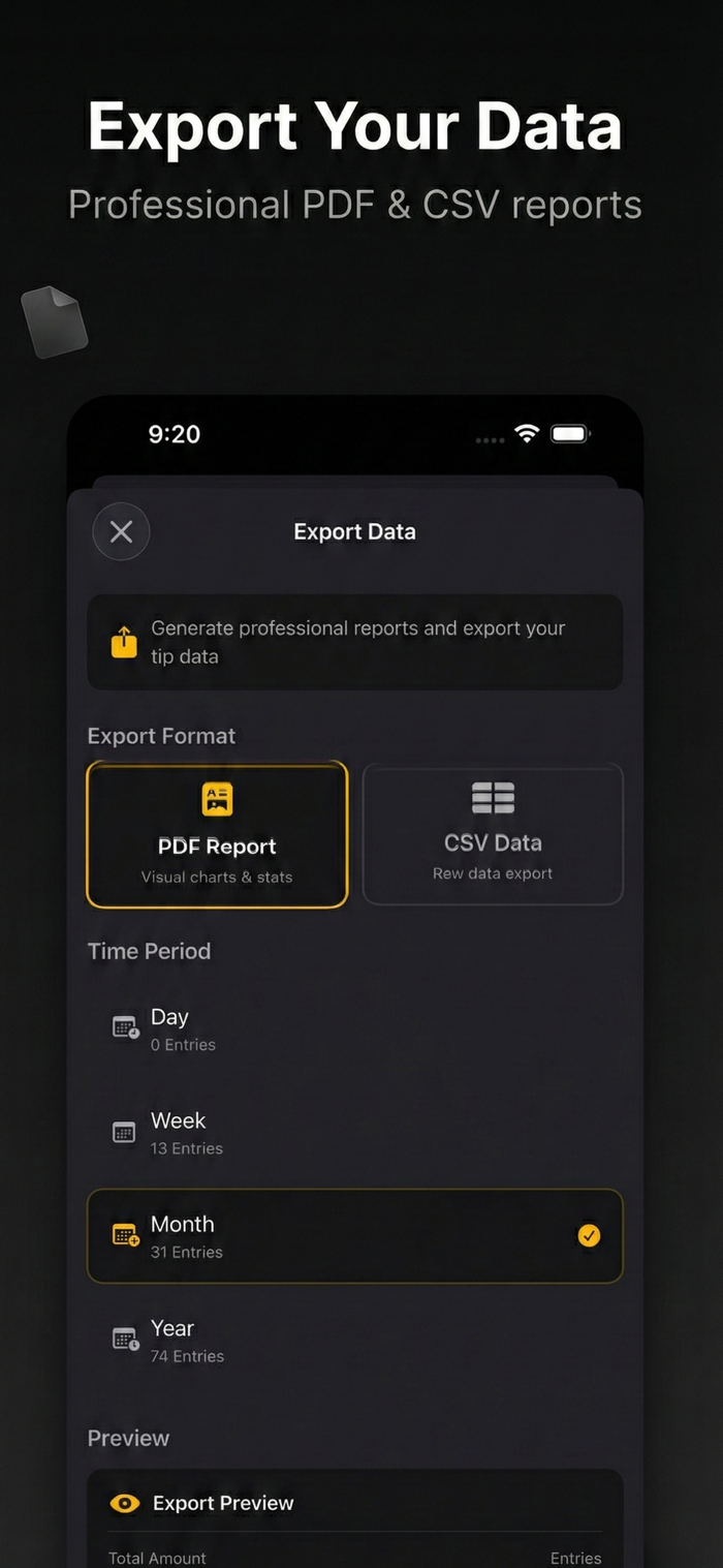 便捷记录小费,含多功能统计及数据导出