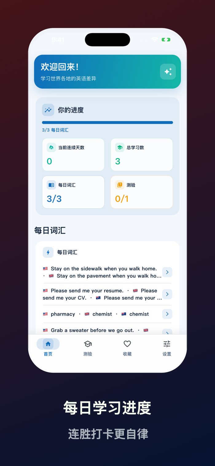 无论是准备出国,还是与国际同事合作,English Variants 都能把英语地区差异变成每天都想打开的语言探索。
