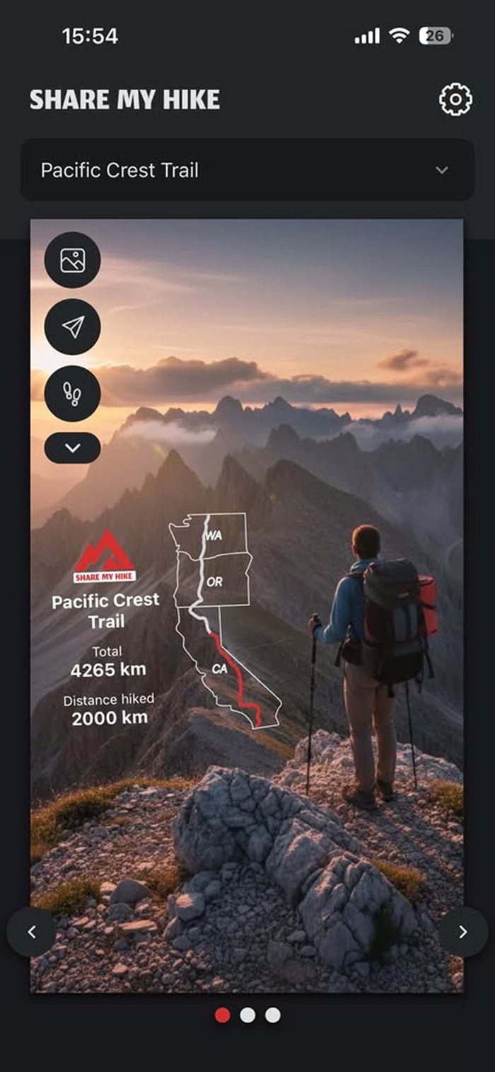 ShareMyHike是一款为长途徒步者打造的应用,能让他们快速轻松分享徒步进度。轻点几下就能标明所处位置,自动生成进度可视化展示,还能选背景图自定义外观,方便在社交媒体分享,无需文字解释。目前提供多条热门长途徒步线路地图,部分需内购,新地图将持续增加,欢迎用户提建议,涵盖阿巴拉契亚小径、太平洋山脊小径等。