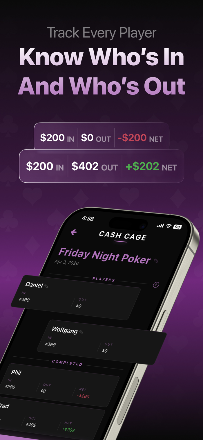 Cash Cage是唯一能追踪每位玩家买入和提现,并优化支付对象的应用。核心功能包括:可在任何扑克游戏中添加玩家并记录买入、提现;进行最优结算计算,减少支付麻烦;支持所有设备云同步;记录所有过往游戏。有月度或年度自动续订订阅,可享无限玩家和游戏追踪等专业内容,购买确认后将从iTunes账户扣费,可管理订阅或取消自动续订,还提供使用条款及隐私政策链接。