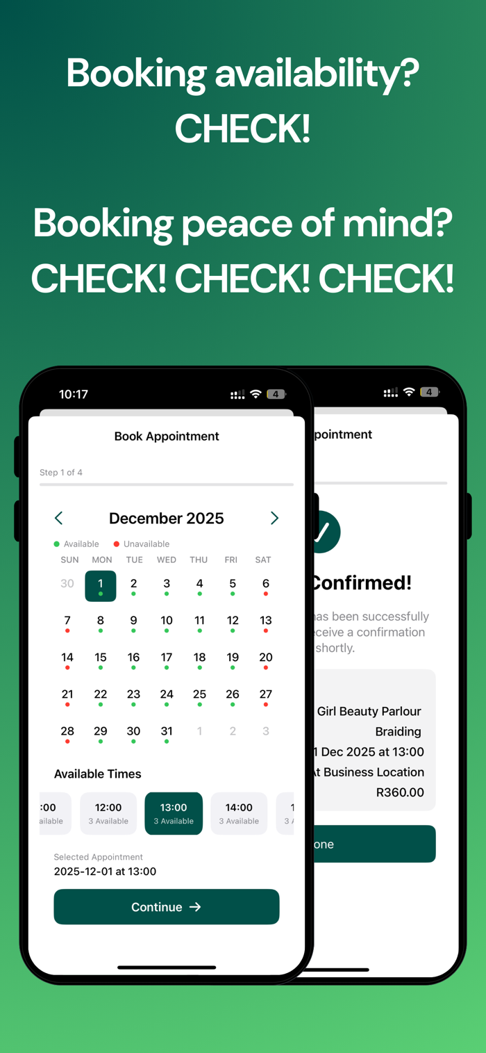 Book appointments in just a few taps. Choose between scheduled appointments or walk-in services. See real-time availability, select your preferred time, and confirm instantly.
