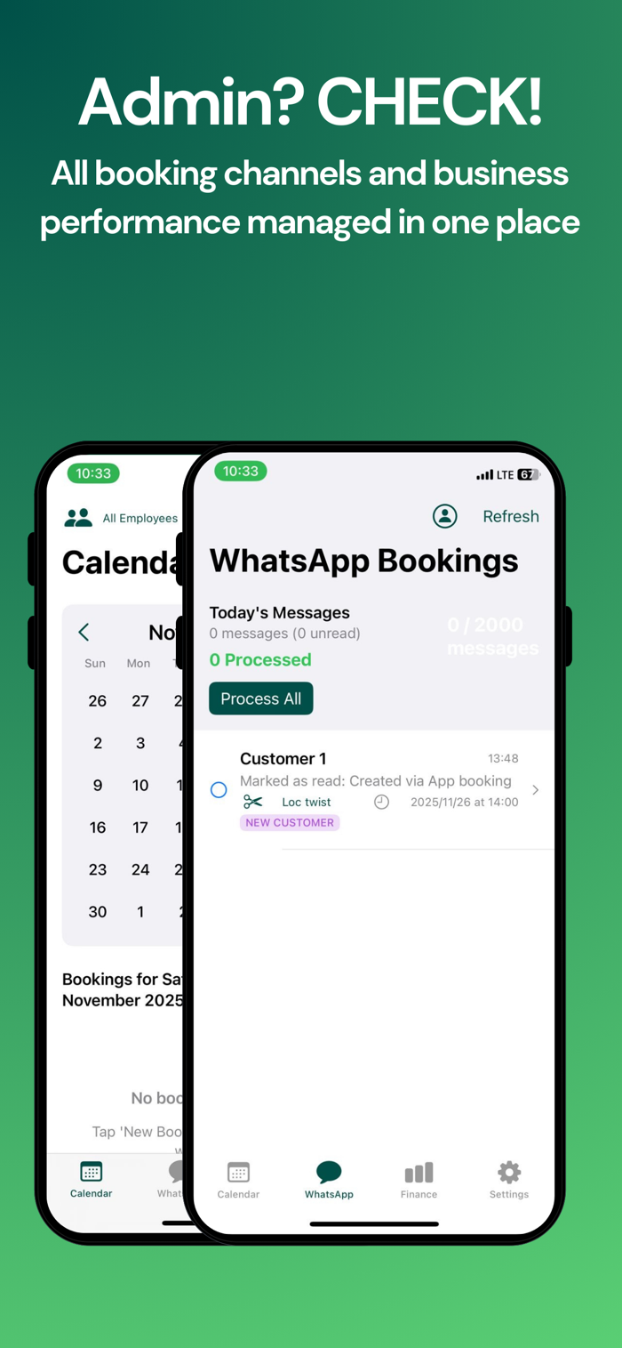 Communicate with customers through WhatsApp Business bot. Send booking confirmations, updates, and respond to inquiries instantly.