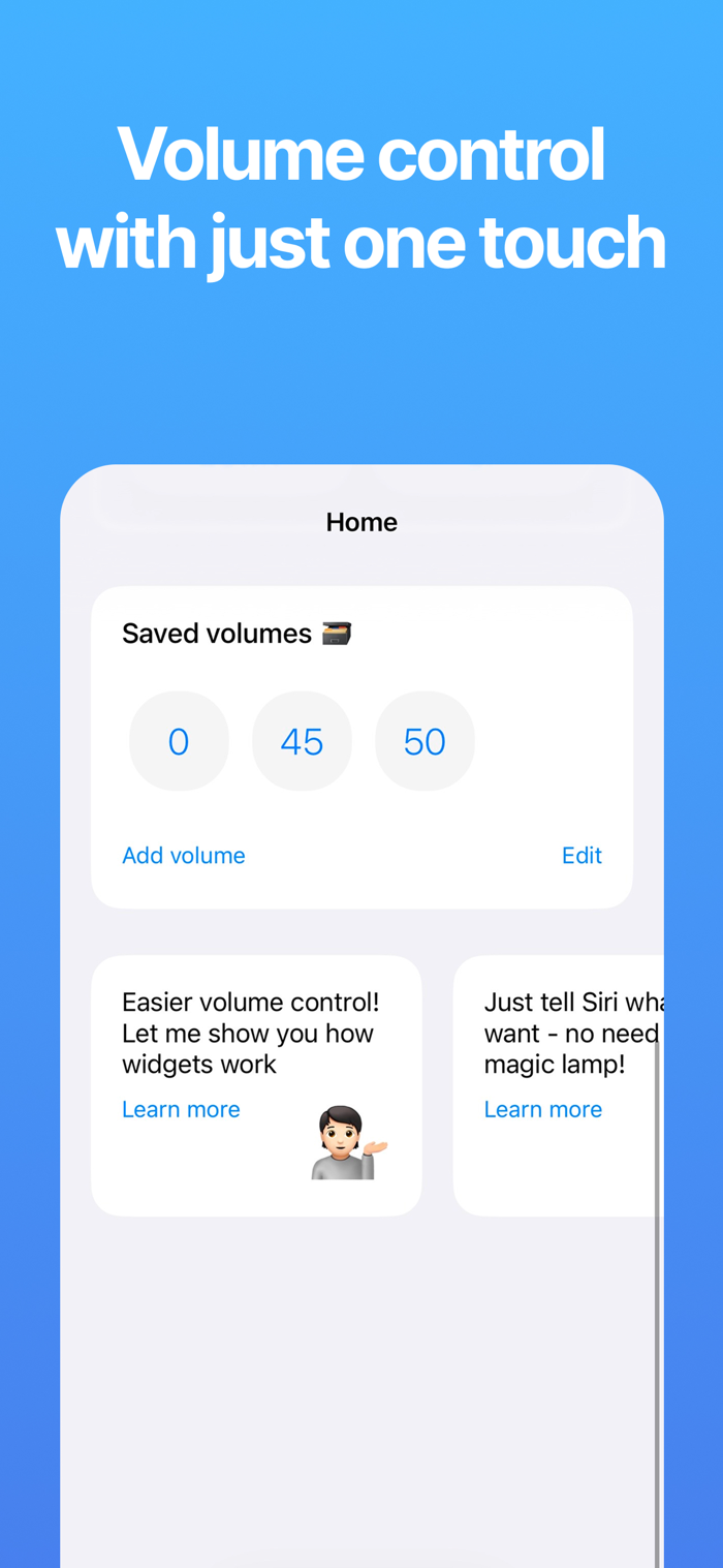Sasha可让你精准调节音量,突破iPhone音量按钮仅16档限制,提供100档调节。能通过滑块或上下按钮精准调节,保存常用音量一键切换,实现1/300超精准控制。还能实时显示具体音量数值,越精细数值越精确。具备主屏幕 widgets、Siri Shortcuts功能,支持AirPlay及蓝牙调节AirPods和Beats音量,不过微调音量控制主要针对苹果音频设备,第三方设备支持有限。